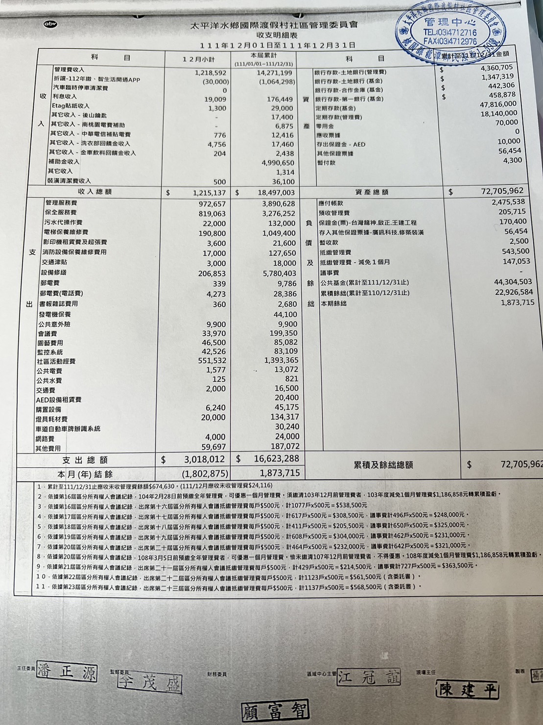 111年12月份收支明細表